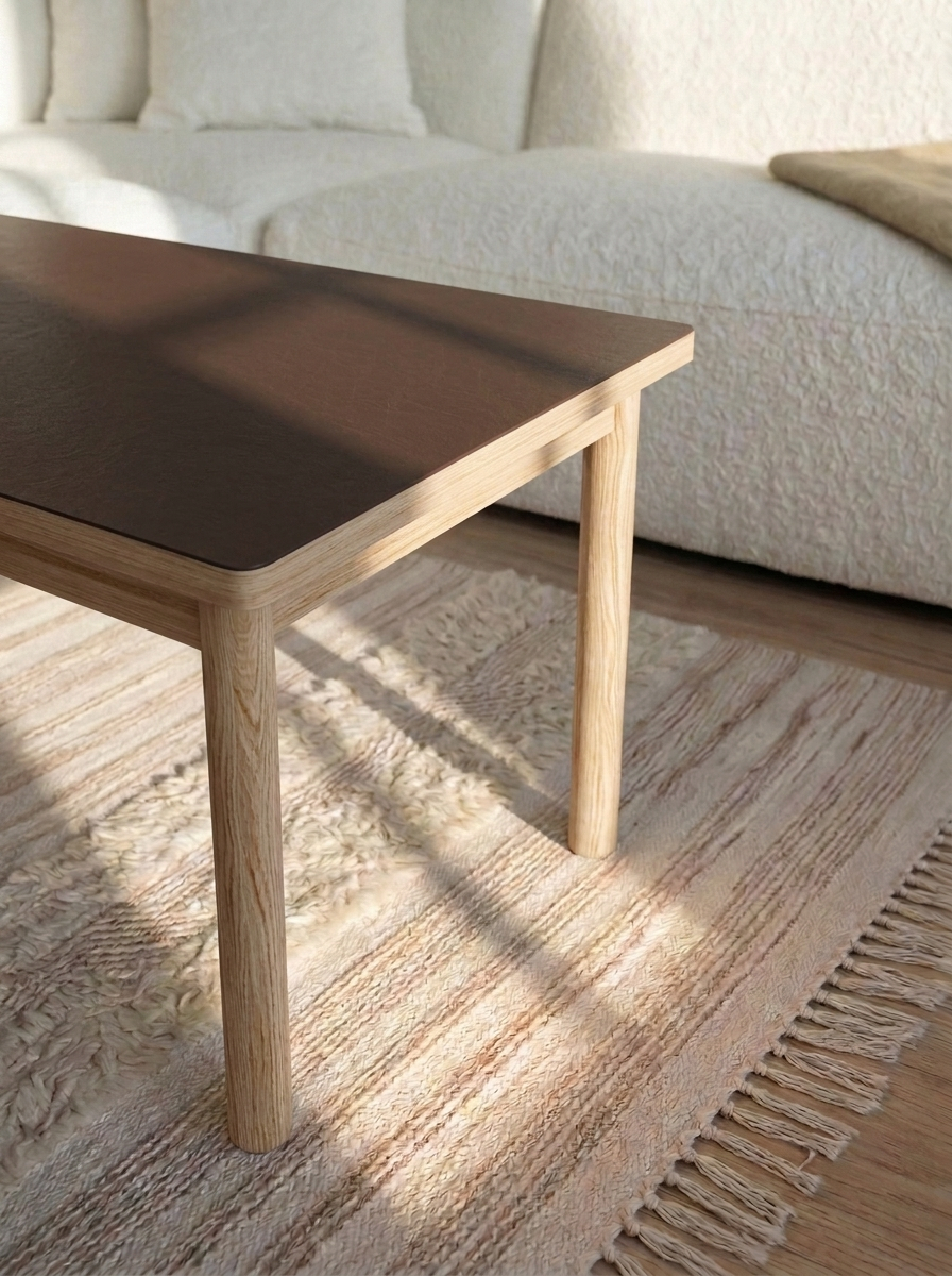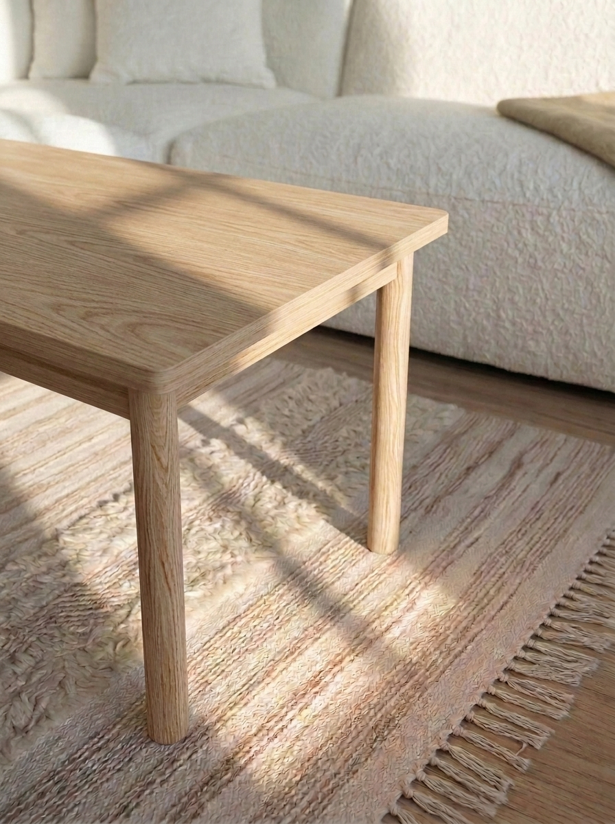 ESSENTIAL OAK sofabordet er lavet i samme enkle stil som resten af serien.